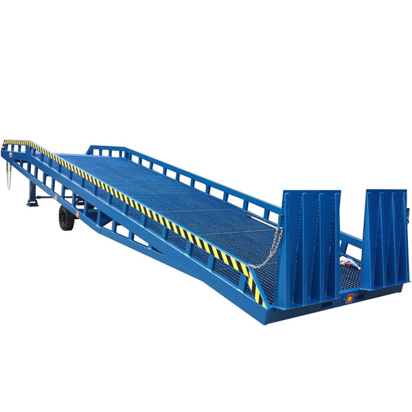 DCQY移動式液壓登車橋使用于裝卸作業(yè)不固定的場合,叉車可以直接通過它從地面駛?cè)胴涇嚿线M行裝卸作業(yè),該產(chǎn)品具有高強度的焊接鋼構(gòu),表面鋪設(shè)防滑鐵網(wǎng),附設(shè)剎車墊防止貨物裝卸時登車橋移動,采用手動液壓泵升降,不需外接電源即可輕松實現(xiàn)登車橋高度的調(diào)節(jié),可調(diào)節(jié)的掛鏈鉤可方便地與各種貨車緊密配合,使裝卸作業(yè)更安全、更快捷、更高效。