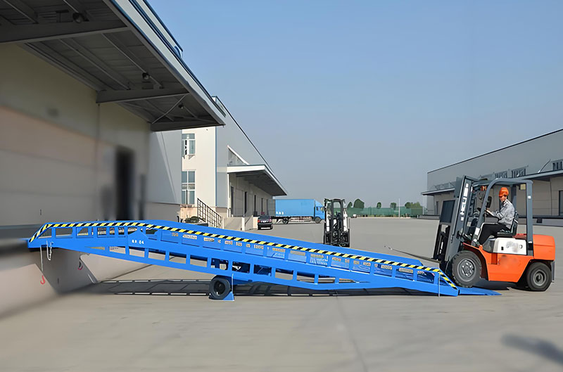 集裝箱登車橋是與叉車配合使用的貨物裝卸專用輔助設(shè)備。有了它,叉車能直接從地面駛?cè)肫囓噹麅?nèi)部進(jìn)行批量裝卸作業(yè)。移動登車橋采用人工液壓動力,不需接 動力電源,只需單人操作,即可實(shí)現(xiàn)貨物的安全快速裝卸。它可使企業(yè)減少大量勞動力,成倍提高裝卸作業(yè)效率,加快貨物流通速度,獲取更大經(jīng)濟(jì)效益。