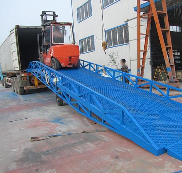 威海登車橋-威海移動登車橋-集裝箱裝卸貨平臺-液壓裝車橋。移動登車橋采用人工液壓動力,不需外接動力電源,只需單人操作,就可以實(shí)現(xiàn)貨物的安全快速裝卸,節(jié)省時間和人力資源。它可使企業(yè)減少大量勞動力,成倍提高裝卸作業(yè)效率,加快貨物流通速度,獲取更大經(jīng)濟(jì)效益。移動登車橋被廣泛應(yīng)用于無裝卸設(shè)備的貨臺及流動裝卸場所,是與叉車配合使用的貨物裝卸輔助設(shè)備。并可以根據(jù)不同的車型及裝車過程車廂的高度變化進(jìn)行調(diào)節(jié)。廣泛應(yīng)用于工廠運(yùn)輸備料、物流集散中心運(yùn)輸貨物、港口碼頭上下集裝箱,隨著工礦企業(yè)的發(fā)展移動式液壓登車橋越來越被廣泛的應(yīng)用到各行各業(yè)卸貨中。