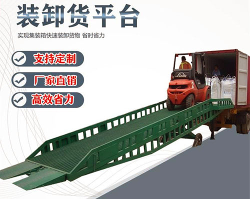 濰坊登車(chē)橋-濰坊移動(dòng)式登車(chē)橋-各大物流碼頭的8噸裝卸過(guò)橋-液壓登車(chē)橋廠(chǎng)家-移動(dòng)式登車(chē)橋是與叉車(chē)配合使用的貨物裝卸輔助設(shè)備,可根據(jù)汽車(chē)車(chē)廂的高低調(diào)節(jié)高度,叉車(chē)可以直接通過(guò)本設(shè)備駛?cè)胲?chē)廂的批量裝卸,僅需單人作業(yè),即可實(shí)現(xiàn)貨物的快速裝卸。它使企業(yè)減少大量勞力提高工作效率。