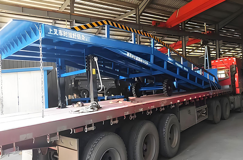 移動式登車橋的主要作用是,在地平面與車廂之間搭起一座橋,有了它,叉車能直接從地面攜帶貨物駛?cè)肫囓噹麅?nèi)部,進行批量裝卸作業(yè)。使用時,前板架在貨車車廂上,起到承載重量的作用,減少了貨物重量對液壓登車橋的壓力,了液壓登車橋的使用壽命,從而達到長期使用的目的。